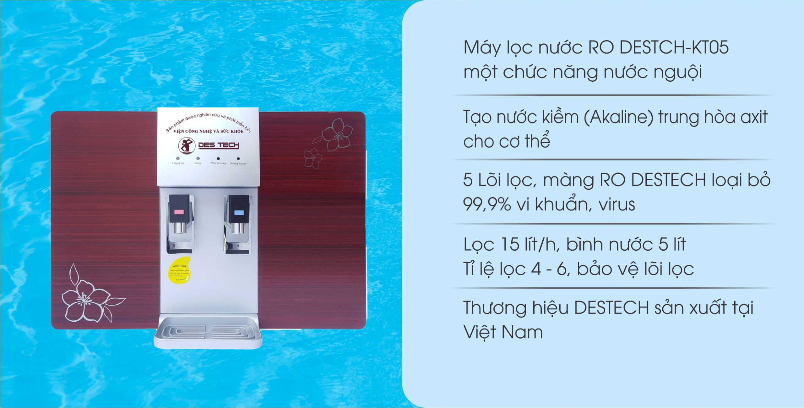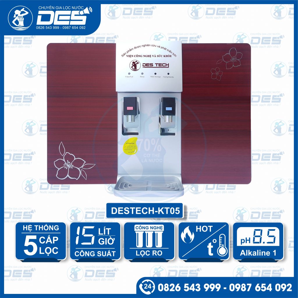 Máy lọc nước Nano nóng lạnh DESTECH-KT05 lõi là lựa chọn an toàn về chất lượng, tiện lợi trong sử dụng, đáp ứng tốt nhu cầu nước uống hàng ngày