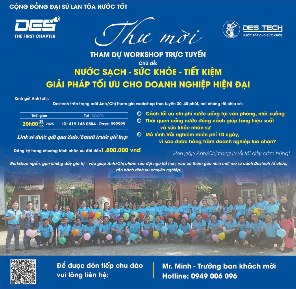 Workshop ngắn, gọn nhưng đầy giá trị – vừa giúp Anh/Chị chăm sóc đội ngũ tốt hơn, vừa có thêm góc nhìn mới mẻ từ cách Destech tổ chức, vận hành dịch vụ chuyên nghiệp.