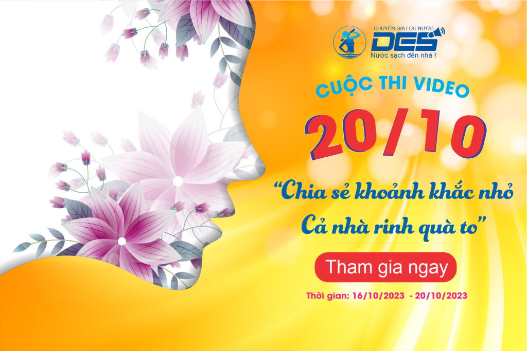 Bằng tất cả yêu thương và trân trọng, CHUYÊN GIA LỌC NƯỚC DES xin gửi những lời chúc, lời biết ơn chân thành và tình yêu mãnh liệt tới một nửa thế giới nhân ngày Phụ nữ Việt Nam 20/10 kèm cuộc thi: