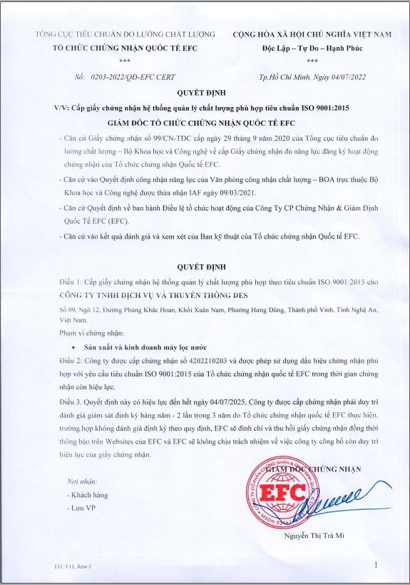 Sản phẩm được nghiên cứu và phát triển bởi Việt công nghệ và sức khỏe. Được phân phối độc quyền bởi Công ty TNHH Dịch vụ và truyền thông DES – Đơn vị chuyên gia lọc nước DES. Quý khách có thể mua sản phẩm từ công ty hoặc các đại lý trên địa bàn